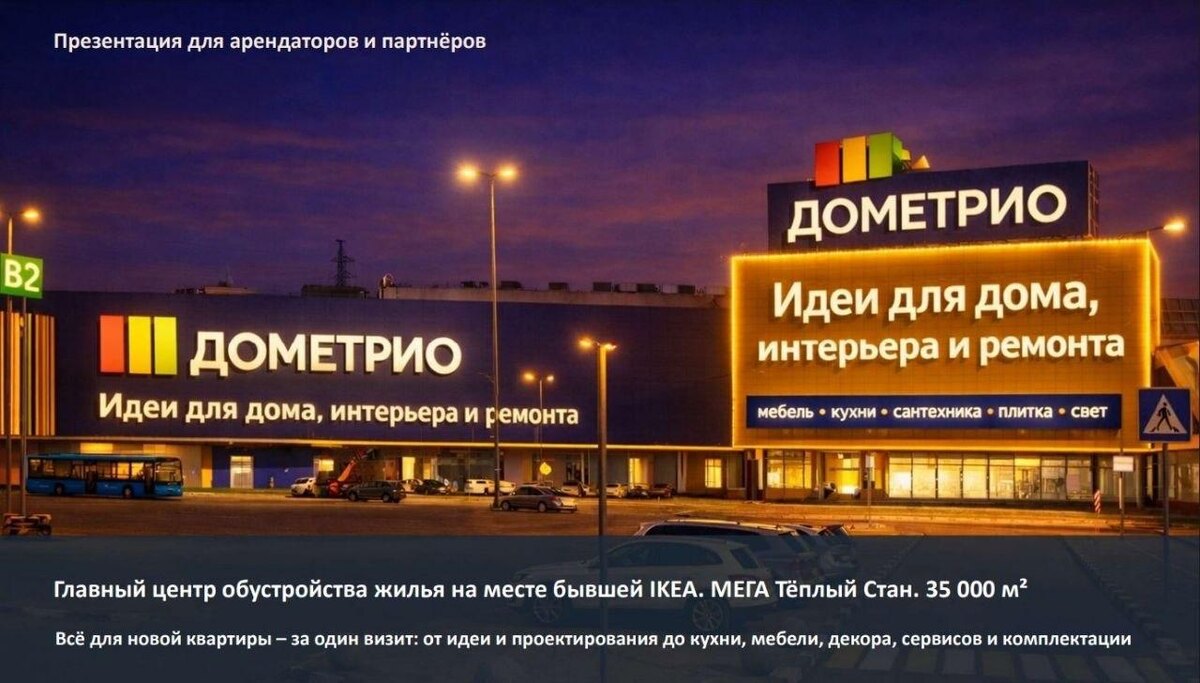 Когда уходит IKEA, рынок начинает фантазировать. В Мега Теплый Стан на её месте может появиться «Дометрио» — не просто мебельный стор, а целый хаб обустройства жилья с гипермаркетом стройки, интерьерными шоурумами и дизайн-студиями. Формат выглядит как ставка на «жизненные сценарии» вместо квадратных метров: клиент приходит не за товаром, а за готовым решением — от идеи до доставки и комплектации. Если взлетит, это уже не классический ритейл, а сервисная платформа в офлайне. Но рынок держит интригу. Про сроки — тишина, про владельцев — тоже. В профильных чатах уже гадают - не Мега ли сама стоит за этим проектом? 👍 MAX | Дзен | VK | Telegram | МагМаг Новости #ритейл #тц #ikea #мега #Дометрио