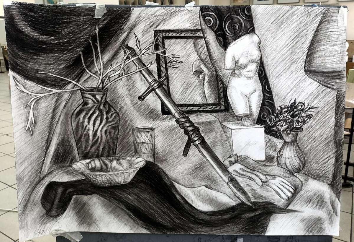 #натюрморт #угольный_карандаш