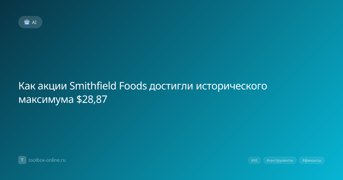 Акции Smithfield Foods достигли исторического максимума $28,87 — это произошло 12 марта 2026 года, что на 15 % выше предыдущего пика и эквивалентно 2 350 рублям за одну акцию. Рост был поддержан рекордным спросом на продукты компании и внедрением AI‑технологий в цепочку поставок. Аналитики считают, что дальнейшее развитие может удержать цену в диапазоне $28–$32. В 2026 году акции Smithfield Foods выросли на 22 % от начала года, достигнув $28,87 к середине марта. Такой рост стал результатом нескольких факторов: К концу первого полугодия аналитики прогнозируют дальнейший рост до $30,00, если текущие тенденции сохранятся. Инвесторы выбирают их из‑за стабильного роста прибыли и инноваций в сфере AI‑управления производством. Компания демонстрирует устойчивый финансовый показатель EBITDA, который в 2025 году превысил 600 млн долларов, а в 2026 году уже достиг 720 млн долларов. Дополнительные причины включают: Эти факторы создают привлекательный профиль риска‑доходности, сравнимый с лидерами