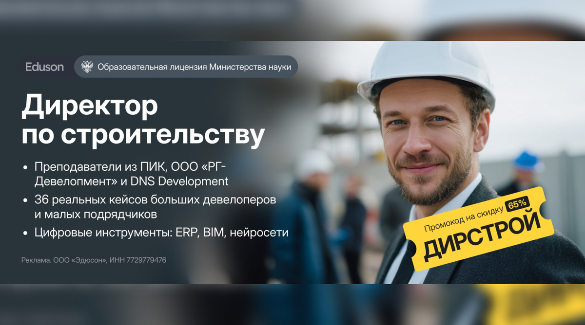 Кто сам руководил хотя бы одним объектом, знает: тут тебе и сметы, и подрядчики, и технадзор, и заказчик с претензиями. Ошибся в одном — встал весь процесс. Чтобы держать проект под контролем, нужна система — от планирования до ввода объекта в эксплуатацию. Научитесь уверенно управлять процессами на курсе «Директор по строительству» от Академии Эдюсон. Кому подойдет: • специалисту с опытом в строительстве или прорабу, который хочет двигаться вверх; • руководителю проекта, который тянет всё на себе; • смежнику, который хочет перейти в сферу строительства; • собственнику, который хочет роста прибыли и прогнозируемый результат. В программе: 36 реальных кейсов больших девелоперов и малых подрядчиков, преподаватели из ПИК, ООО «РГ-Девелопмент» и DNS Development, цифровые инструменты (ERP, BIM, нейросети) и шаблоны для экономии времени. Академия лицензирована — вы получите диплом о профпереготовке с занесением в ФРДО и сможете официально подтвердить квалификацию работодателю + вернёте 13% ст
