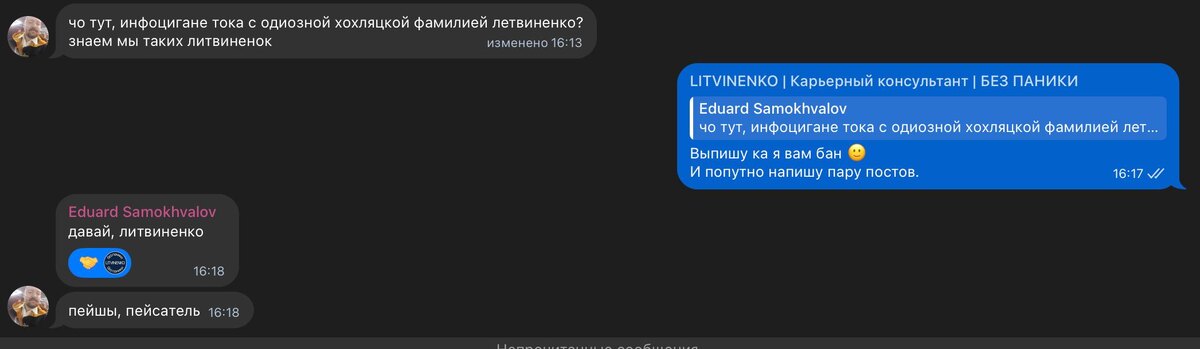 Я редко выношу конфликты в публичное поле, но считаю важным подсвечивать ситуации, где границы профессионального общения не просто нарушаются, а демонстративно уничтожаются. В чате моего проекта #bezpaniki мы столкнулись с прямыми оскорблениями и шовинистическими высказываниями от Эдуарда Самохвалова (Founder в Algomaschine). Скриншоты прилагаю. Почему это важно обсудить: Для рекрутеров: Обратите внимание на стиль коммуникации данного кандидата/партнера. В индустрии, где софт-скиллы и этика значат не меньше хард-скиллов, такое поведение — критический риск для любой команды. Для бизнеса: Компании, планирующие сотрудничество с Algomaschine, могут сделать выводы о корпоративной культуре и ценностях, которые транслирует руководство. Проект #bezpaniki создан для помощи людям в поиске работы без иллюзий. И одна из главных «иллюзий», от которой стоит избавиться — это вера в то, что токсичность в 2026 году может оставаться безнаказанной или незамеченной. Мы за конструктив, дебаты и даже