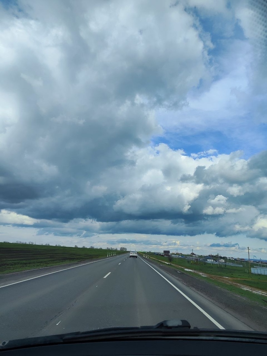 благодаря этому Небо (не заслуживает оно, чтоб с маленькой буквы его писать ☺️) - живой кинозал, нет космическое зрелище... Как же это красиво!!! 🌎 Вот ради этого стоит жить, чтоб ещё столько раз увидеть эту невероятную волшебную перемену 🙏 Еду домой, а облака словно ложатся на проезжую часть, над полями парят, то белоснежные пушистые-пушистые, то грозовые тёмные тяжёлые, несущие в себе что-то непредсказуемое ‼️