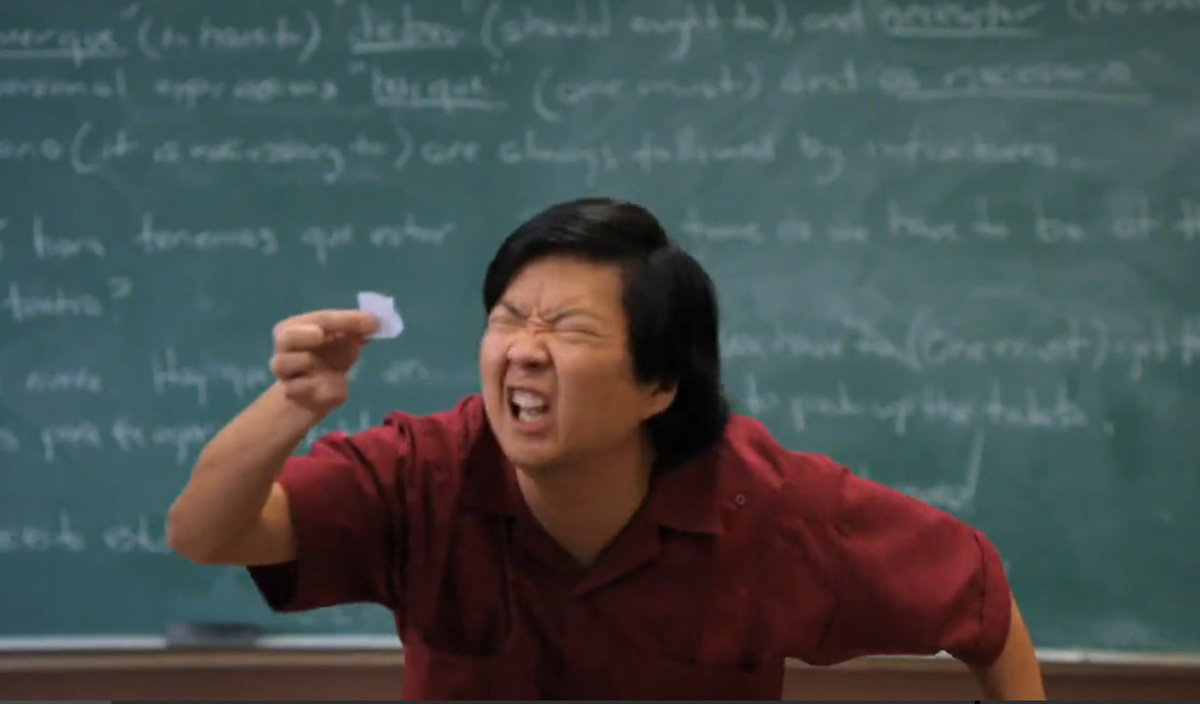 Яркая, немного гиперболизированная актерская игра нередко становится источником мемов. Кадр из сериала, где американо-кореец (Кен Джонг не имеет никакого отношения к Китаю), щурясь, напряженно вглядывается в крохотную бумажку на фоне школьной доски – из таких. Мем используется когда кто-то пытается разобрать что-то слишком мелкое или непонятное, читает неразборчивый текст, сталкивается с абсурдной или сложной информацией. Также возможно высмеивание инвертированных ситуаций. Эпизод взят из 5-й серии 1-го сезона сериала «Сообщество» (Community). Сеньор Ченг отказывается сообщать студентам результаты теста, потому что он нашел шпаргалку. Именно на этом клочке бумаги была написана вся информация о тесте. В роли Сеньора Ченга – Кен Джонг. Напомним, что мем «Ой, как удобно!» появился также благодаря сериалу «Сообщество».