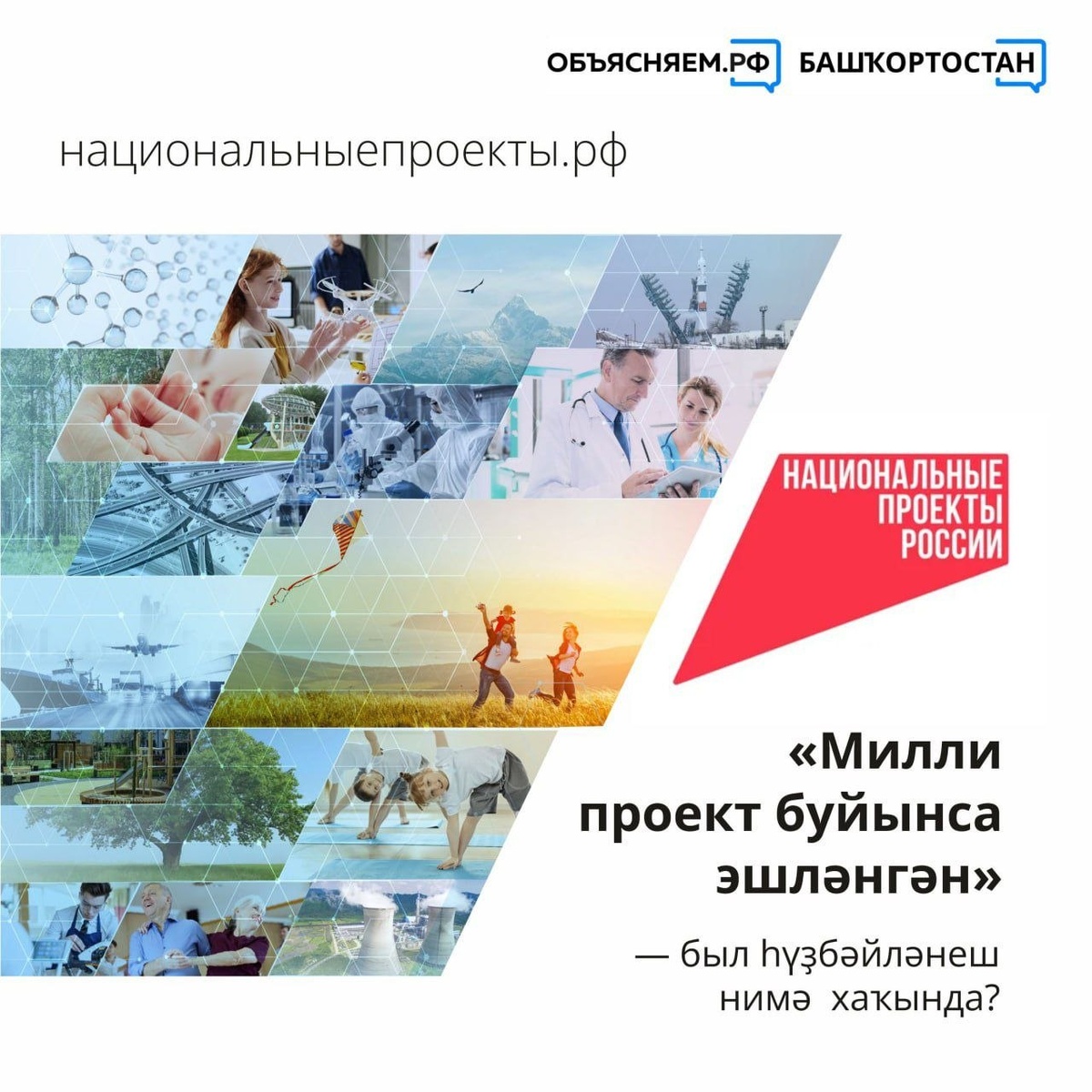 Күперҙәр, мәктәптәр, баҡсалар. Асылда, Рәсәйҙе киләһе йылдарҙа үҫтереүҙең төп пландары. Бурыстар һәр кемгә аңлайышлы: медицинаны арзаныраҡ, белем биреүҙе сифатлыраҡ, ҡалаларҙы уңайлыраҡ, иҡтисадты көслөрәк итеү. Барыһы ла кешеләрҙең тормошо яҡшырһын өсөн башҡарыла. Бөгөн ниндәй милли проекттар эшләй: "Йәштәр һәм балалар", "Ғаилә", "Кадрҙар", "Оҙайлы һәм әүҙем тормош", "Йәшәү өсөн инфраструктура", "Экологик именлек", "Туризм һәм ҡунаҡсыллыҡ", "Йыһан эшмәкәрлеген үҫтереү" һәм башҡалар. Милли проекттар ярҙамында яңы мәктәптәр һәм дауаханалар төҙөлә, парктар һәм ихаталар төҙөкләндерелә, юлдар яңыртыла, эшҡыуарҙар ярҙам ала һәм башҡалар. Мәҫәлән, Сибайҙа "Ғаилә" милли проекты буйынса балалар мәҙәни-ағартыу үҙәге асыла. Ҡала мәҙәниәт йорто нигеҙендә ижад, уйын һәм үҫеш өсөн киңлек булдырыласаҡ. Октябрьскийҙа "Йәшәү өсөн инфраструктура" милли проекты буйынса музыка колледжы биләмәһен төҙөкләндерәсәктәр. Төбәктә милли проекттарҙың һуңғы яңылыҡтары сайтында. Ә бында — милли проекттарҙың