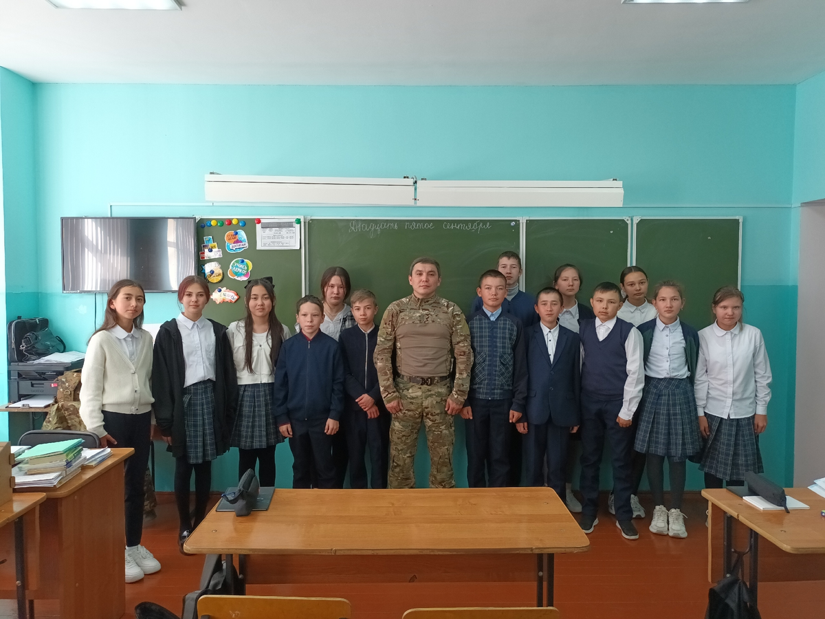 В селе Мурсалимкино Салаватского района прошла интересная встреча с земляком, выпускником школы, а ныне участником специальной военной операции Хафизовым Линаром Максутовичем. Он посетил родную школу - побеседовал с учениками, рассказал о подвигах российских военнослужащих. Обучающиеся имели возможность задавать вопросы бойцу и слушали его с большим интересом. Боец рассказал ребятам о важности служения в армии, о любви к Родине и о выполнении своего служебного долга перед своим народом. В диалоге была затронута и тема помощи нашим солдатам, которая приходит из тыла. Письма с теплыми словами от учеников и посылки с родного края греют душу каждому военнослужащему и поддерживают их боевой дух. Это очень важное и нужное дело.