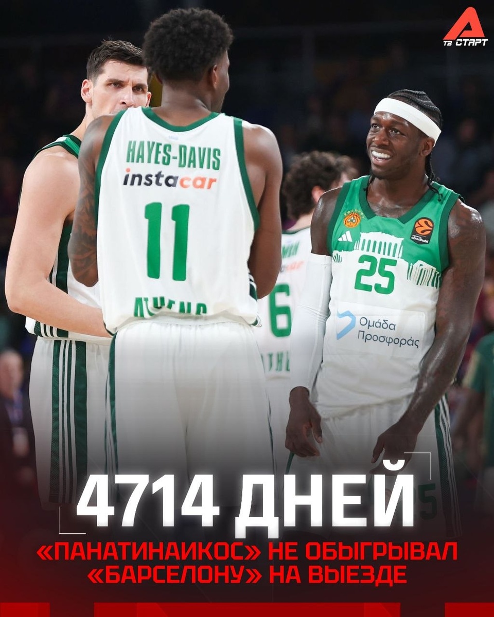 » 13 лет «зеленые» не побеждали в Барселоне и вчера «сине-гранатовые» наконец были повержены. Благодаря этой победе «Пао» обошел «Барсу» в таблице и вышел в зону прямого выхода в плей-офф ⬆️ Подписывайся на ТВ СТАРТ в MAX📲