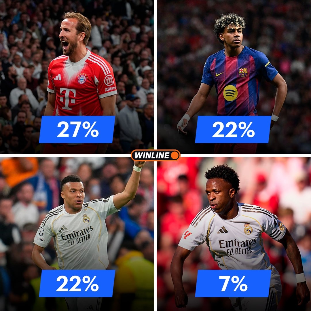 Мбаппе с Ямалем делят вторую строчку, а Вини отдал дань уважения Кришу.