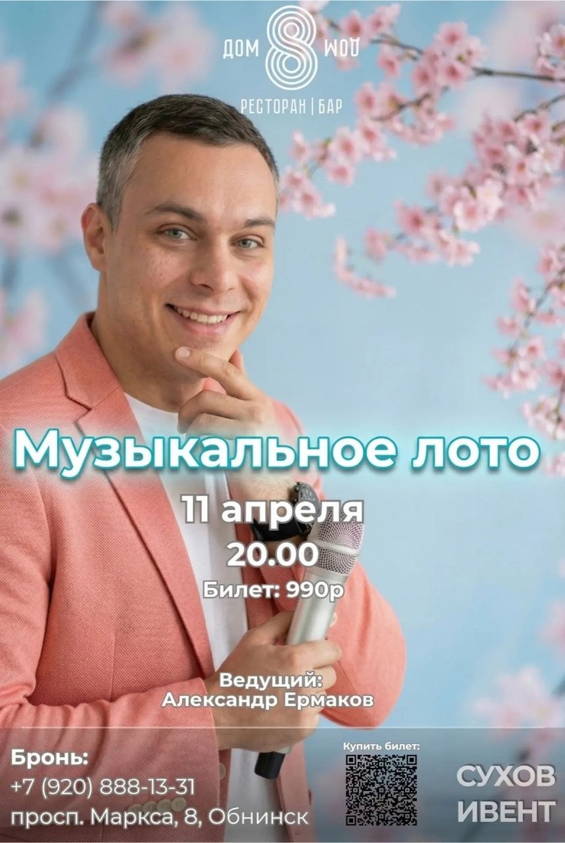 » 🗓 11 апреля, суббота, 20:00 📍 Обнинск, пр-т Маркса 8, этаж 2 Весёлый вечер с хитами, конкурсами и подарками! Слушай музыку, отмечай бланки и кричи «Бинго!» 🎉 В программе: • Ведущий — стендап-комик с улетными шутками • Музыкальные раунды и весёлые конкурсы • Розыгрыш подарков и вкусная кухня Берите друзей и близких — будет весело! 🎟 Билеты: https://moscow.qtickets.events/226885-muzykalnoe-loto-v-restorane-dom-8 📞 Бронь столов: +7 (920) 888-13-31
