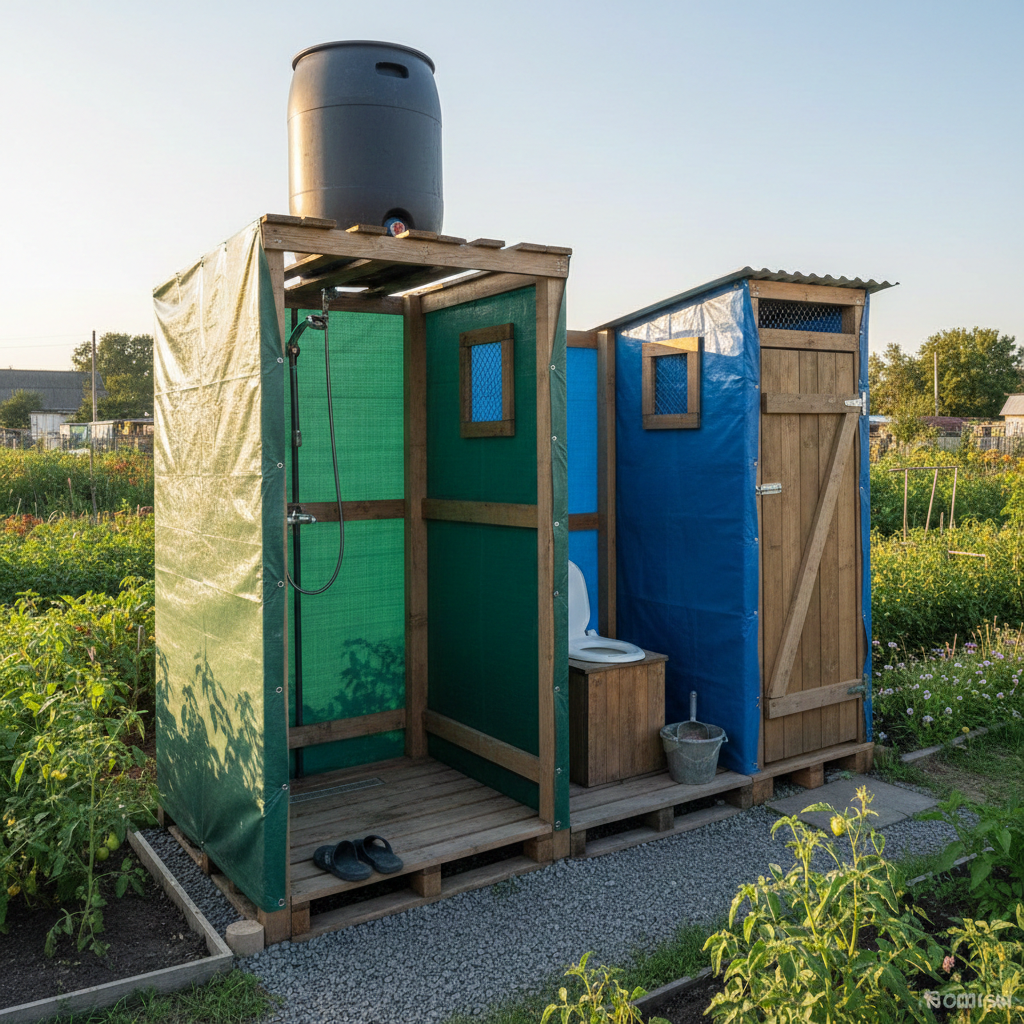 Я тоже через это прошел. Сначала была скрипучая будка с дыркой в полу и ведром. Потом — душ из полиэтиленовой пленки, который сдувало ветром. Гости пили чай и терпели до дома.