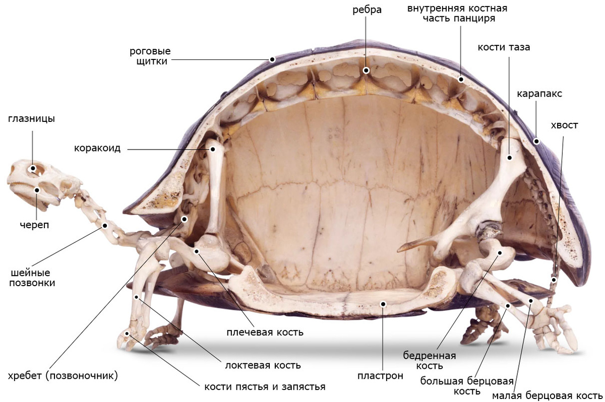 Черепахи -одно из самых необычных животных на планете., настоящее чудо эволюции, которое носит свой скелет снаружи и живёт так уже более 200 миллионов лет. Это единственное существо, у которого рёбра находятся снаружи тела. Панцирь — это не домик. Это часть её скелета. Позвоночник и рёбра черепахи срослись с костной частью панциря. То есть панцирь — это буквально её кости, просто вывернутые наружу в процессе эволюции. Поэтому черепаха не может «выйти из панциря» — это всё равно что человеку выйти из своего позвоночника и рёбер. Панцирь состоит из двух частей: А ещё у черепахи удивительно устроена шея. Её скелет позволяет складывать шею буквой S и полностью втягивать голову внутрь панциря Черепахи принадлежат отряду Testudines Латинское название Testudo черепаха получила от слова «testa», означавшего «кирпич», «черепица» или «глиняный сосуд». Русский аналог произошел от праславянского слова čerpaxa, которое в свою очередь произошло от измененного древнеславянского слова «čerpъ», («ч