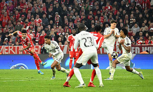 В ответном матче четвертьфинала Лиги Чемпионов мюнхенская «Бавария» на своем поле одержала победу над мадридским «Реалом», сообщает Sports.kz. Встреча получилась результативной и насыщенной событиями. Счет был открыт после ошибки Мануэля Нойера, который при выносе мяча попал в Арда Гюлера — полузащитник «Реала» воспользовался моментом и отправил мяч в пустые ворота. Вскоре «Бавария» восстановила равенство после розыгрыша углового: Александр Павлович точно пробил головой. Гости снова вышли вперед благодаря дублю Гюлера, который эффектно реализовал штрафной удар. Однако Харри Кейн быстро сравнял счет. До перерыва мадридцы вновь повели — Килиан Мбаппе сделал счет 3:2. После перерыва команды долго не могли отличиться, а положение «Реала» осложнилось удалением Эдуарду Камавинги. В концовке встречи «Бавария» сумела переломить ход игры: сначала Луис Диас сравнял счет. Затем Майкл Олисе забил решающий мяч — 4:3. С учетом победы 2:1 в первом матче мюнхенский клуб вышел в полуфинал Лиги Чемпионо