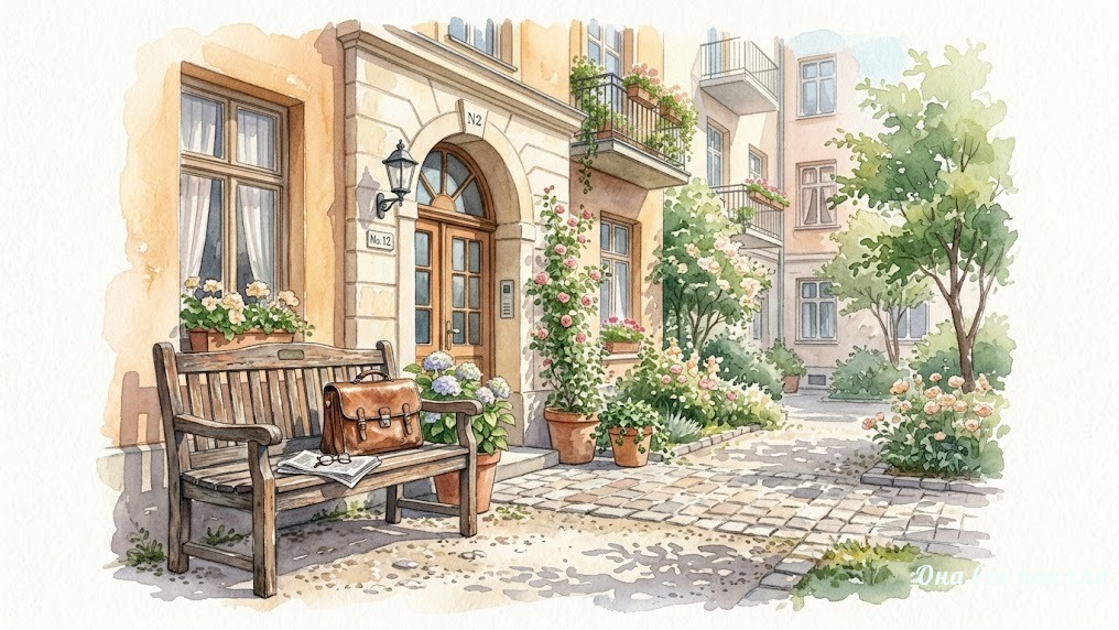 Его звали... впрочем, я тогда ещё не знала, как его зовут. Просто мужчина на лавочке. Высокий, сутулый, лет семидесяти. Пиджак старый, но чистый, с платком в нагрудном кармане. Портфель на коленях, потёртый до белёсых пятен на углах. Ботинки начищены так, будто он каждое утро собирался на что-то важное.