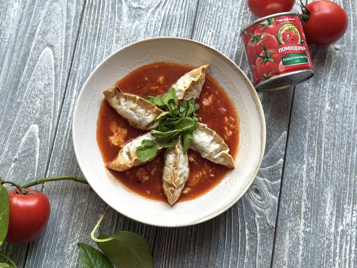 Согревающий, сытный и готовится моментально. А главный сюрприз, который точно оценят и дети, и взрослые — это хрустящие пельмешки прямо в тарелке! Насыщенный цвет и идеальный кисло-сладкий баланс бульону придаст наша томатная паста «Помидорка». Накрывайте на стол и зовите родных — будет вкусно! - Яйца - 2 шт.