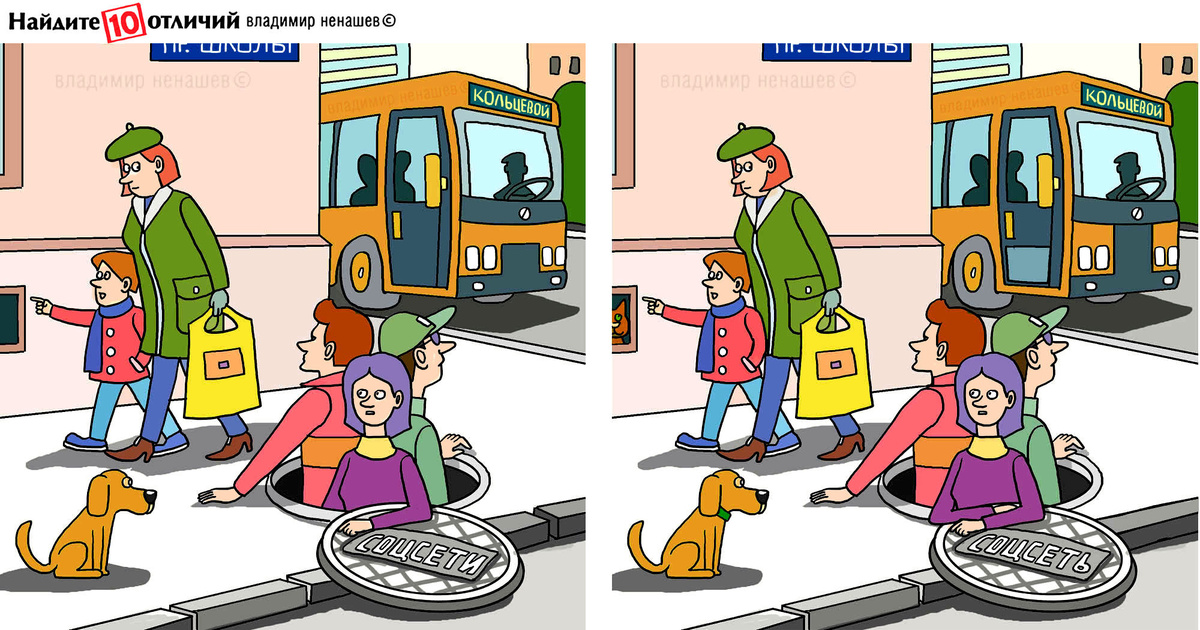 Всем привет! У нас новая загадка с новым сюжетом. Замечайте 10 отличий в многоплановом рисунке. Будет не очень просто, но полезно.