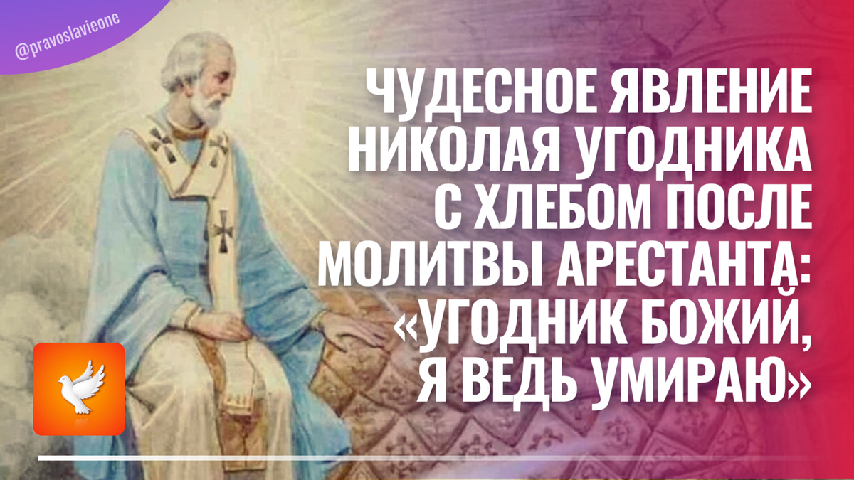 Что было дальше — не помню, только вдруг услышал громкий стук в дверь. Открыл. Порыв ледяного ветра со снегом ударил в лицо. Никого нет. Но что это? У двери — свежие следы, снег ещё не успел их замести. Заглянул за угол — а там стоит большая сумка. Господи Боже! Что за чудо?! Оглянулся на следы — они уходили в сторону леса. Кругом ни души, только буря всё сильнее разгулялась. Взял я ту сумку — тяжёлая. Принёс в хату. Открыл... Родные мои, в сумке лежали свежие хлебы! Да ещё тёплые, совсем горячие — будто только что из печи вынули. Но какая там печь?! На пятьдесят вёрст вокруг не было ни одного жилого дома — только ссыльные да арестанты. Вот этим хлебом мы и жили целую неделю, пока не утихла пурга и не привезли нам паёк. И никто из нас не умер. В других лагерях, слышали мы, многие замёрзли в ту метель, а наши — все живы остались. Это святитель Николай Чудотворец спас нас».
