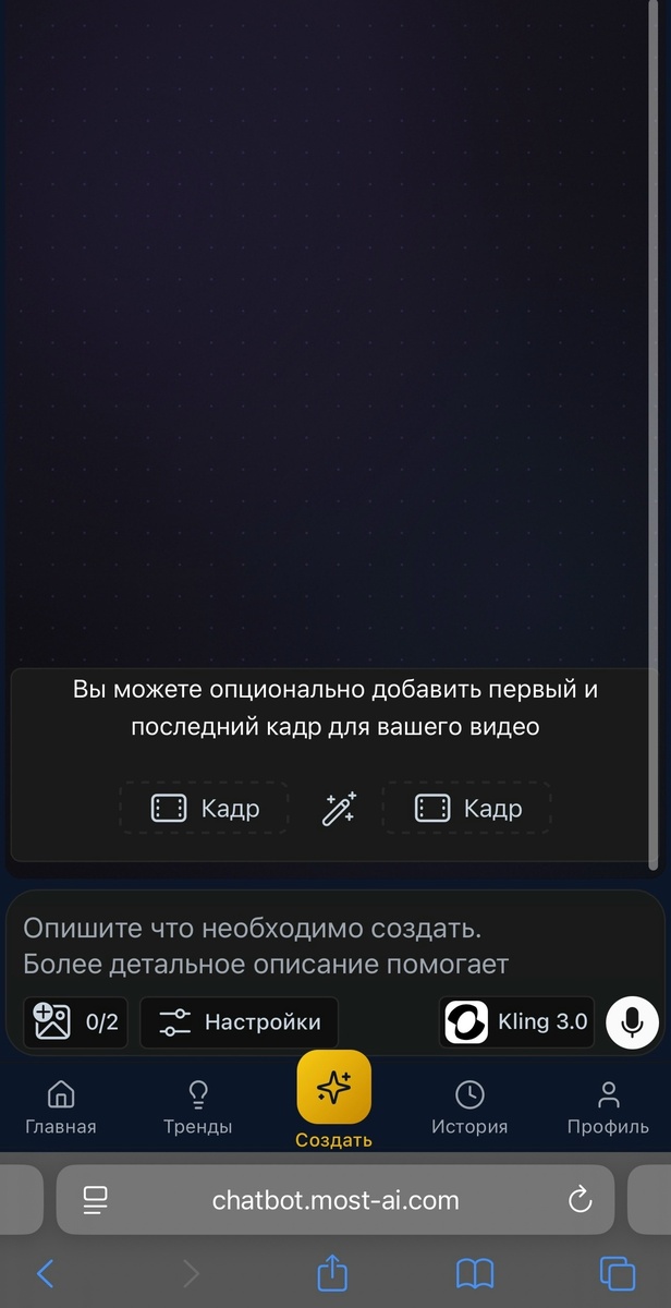 Заходим на платформу most-AI (там Kling 3.0 доступен без VPN).