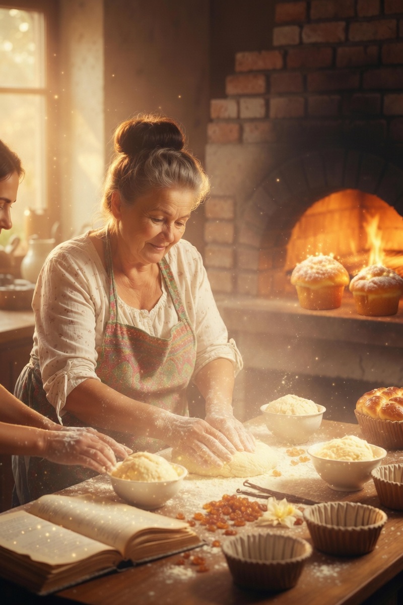Они замешивали вместе. Лена сыпала муку неловко, облако белой пыли поднялось к потолку. Ольга добавляла масло кусками, желтки, ваниль, изюм, который замачивала с ночи в роме — секрет бабушки Анны. Разговор шёл рваный, как всегда в последние годы.