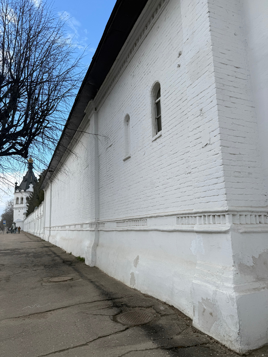 После посещения Ипатьевского монастыря я вызываю такси, чтобы доехать до центра. Можно и дойти, но не хочется снова созерцать разруху. Таксист высаживает нас возле стены. Перед нами Богоявленско-Анастасиин монастырь. Внутрь мы уже не пошли, был вечер, а ещё хотелось увидеть Кремль, ряды, центральный парки засветло вернуться в отель. Фреска должно быть красивая, читала много восторженных отзывов про неё. Перед нами одна из центральных улиц города. Дом художника В.Ф. Стожарова. Оригинальная архитектура, наличники, резьба… и, увы, состояние столь характерное для строений этого города… Впереди пожарная каланча и торговые ряды. Фотозона возле кафе. Лось возле сувенирного магазина. Сувениров в Костроме много. Много всего продаётся с изображением снегурочки. Популярными сувенирами считаются Костромские сыры и чёрная соль. Здание пожарной каланчи в отличном состоянии, видно, что после недавнего ремонта. Работает до 17.00, на часах 18.00, потому посмотрели только снаружи. Центральная площадь
