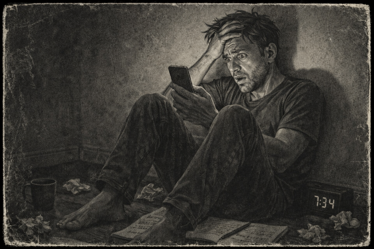 После спора я не спал до четырёх утра. Лежал, смотрел в потолок и прокручивал в голове одно и то же. «Цикл». «Каждый раз». «Артём не слушает». SMS от неизвестного номера. Тётя Нина, которая слышит моё молчание три минуты.