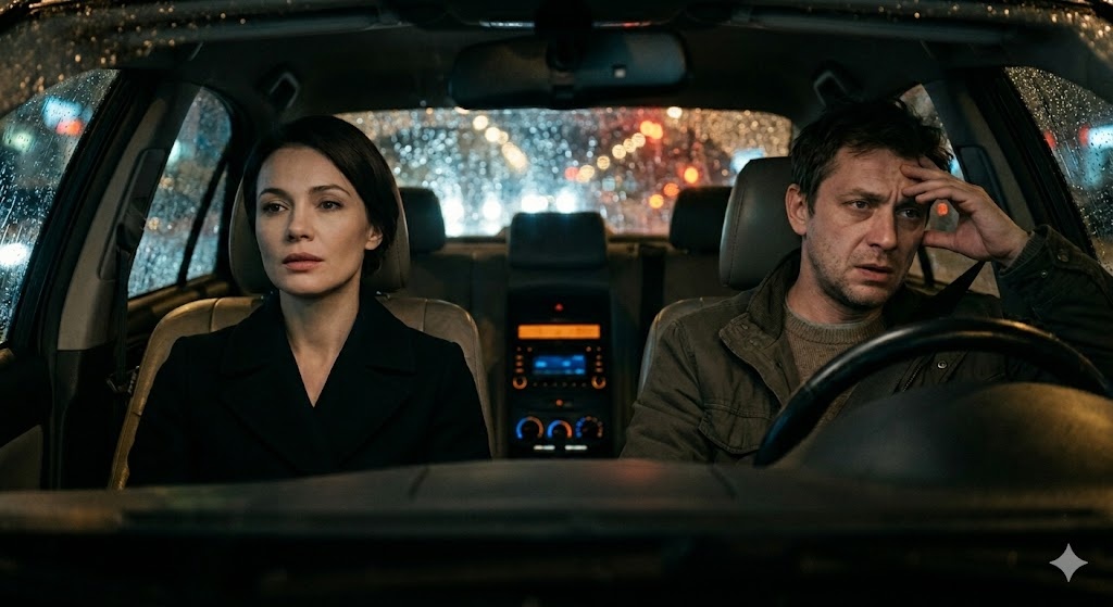 Ее голос прозвучал неестественно ровно, перекрывая монотонный гул автомобильного мотора и шум вечернего дождя, барабанящего по лобовому стеклу. В салоне повисла тяжелая, вязкая тишина, которую нарушал лишь мерный скрип дворников.