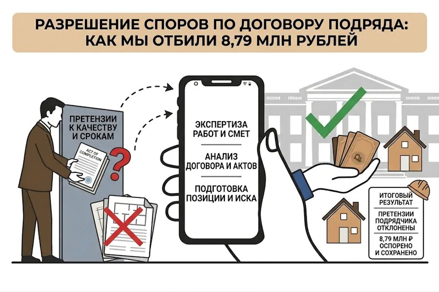 - В чем угроза: Подрядчик подает иск за скрытые работы, пытается изъять строительную технику с объекта, завышает проценты и перекладывает на вас расходы на своих юристов.