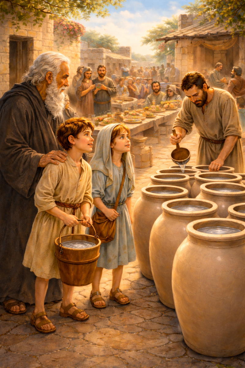 — Наполните эти сосуды водой, — сказал Он тихо, но твёрдо.