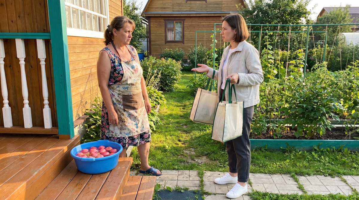 — Чего молчишь? — Оксана убрала дежурную улыбку. — Я сумки привезла. Давай, накладывай. Мне еще на шестичасовой автобус успеть надо.