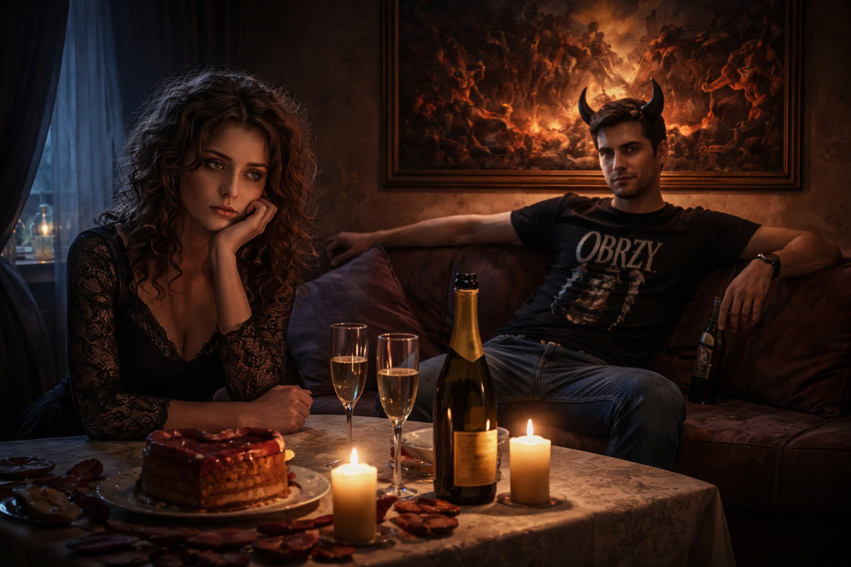 - Да я бы душу дьяволу продала, лишь бы ты хоть немного помолчал… - процедила бедолага, накрывая стол скатертью, купленную специально для свидания.