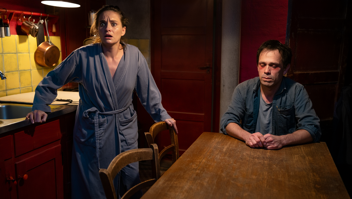 Комната дышала застоявшимся воздухом, пропитанным запахом вчерашнего ужина и чего-то чужого, терпкого, как незрелые фрукты. На полу валялась пара мужских ботинок, оставленных наспех, словно их хозяин спешил спрятаться от самого себя. Свет от единственной лампы в коридоре лежал на старом ковре полосой, выхватывая из полумрака пылинки, танцующие в воздухе.