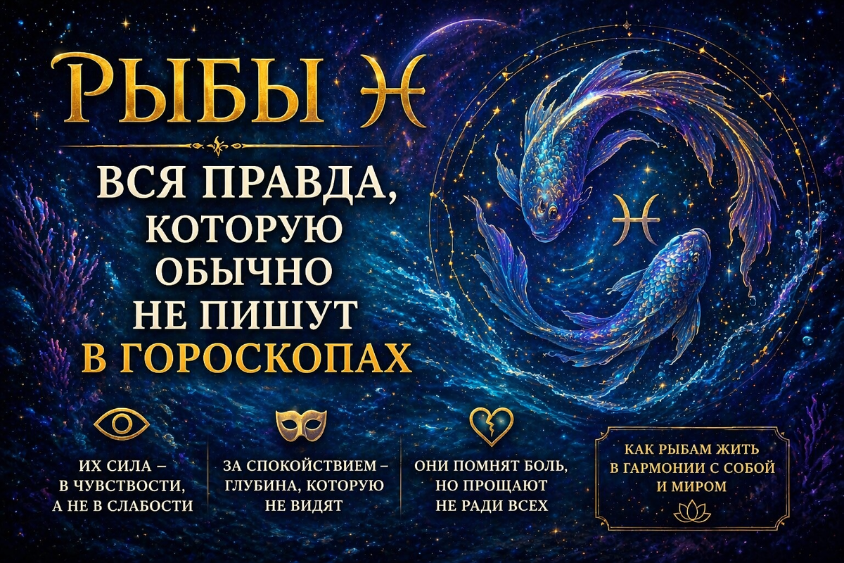 Я вижу это в практике снова и снова. Рыбы — самый недопонятый знак. Их описывают как слабых, а они — одни из самых выносливых. Их считают наивными, а они видят людей насквозь. Просто молчат об этом.