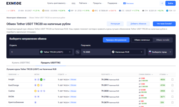Перед любой сделкой важно выбрать сервис с оптимальным курсом и надёжной репутацией. Для этого можно воспользоваться мониторингом Exnode, где собраны актуальные отзывы и курсы обменников. Сравните несколько вариантов, чтобы найти тот, который предложит лучшие условия.