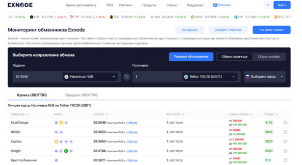 Чтобы упростить выбор и снизить вероятность ошибок, многие используют мониторинги обменников, например Exnode. Такие сервисы позволяют сравнивать P2P обменники в России, отслеживать актуальные курсы, резервы и выбирать проверенные варианты для проведения сделки.
