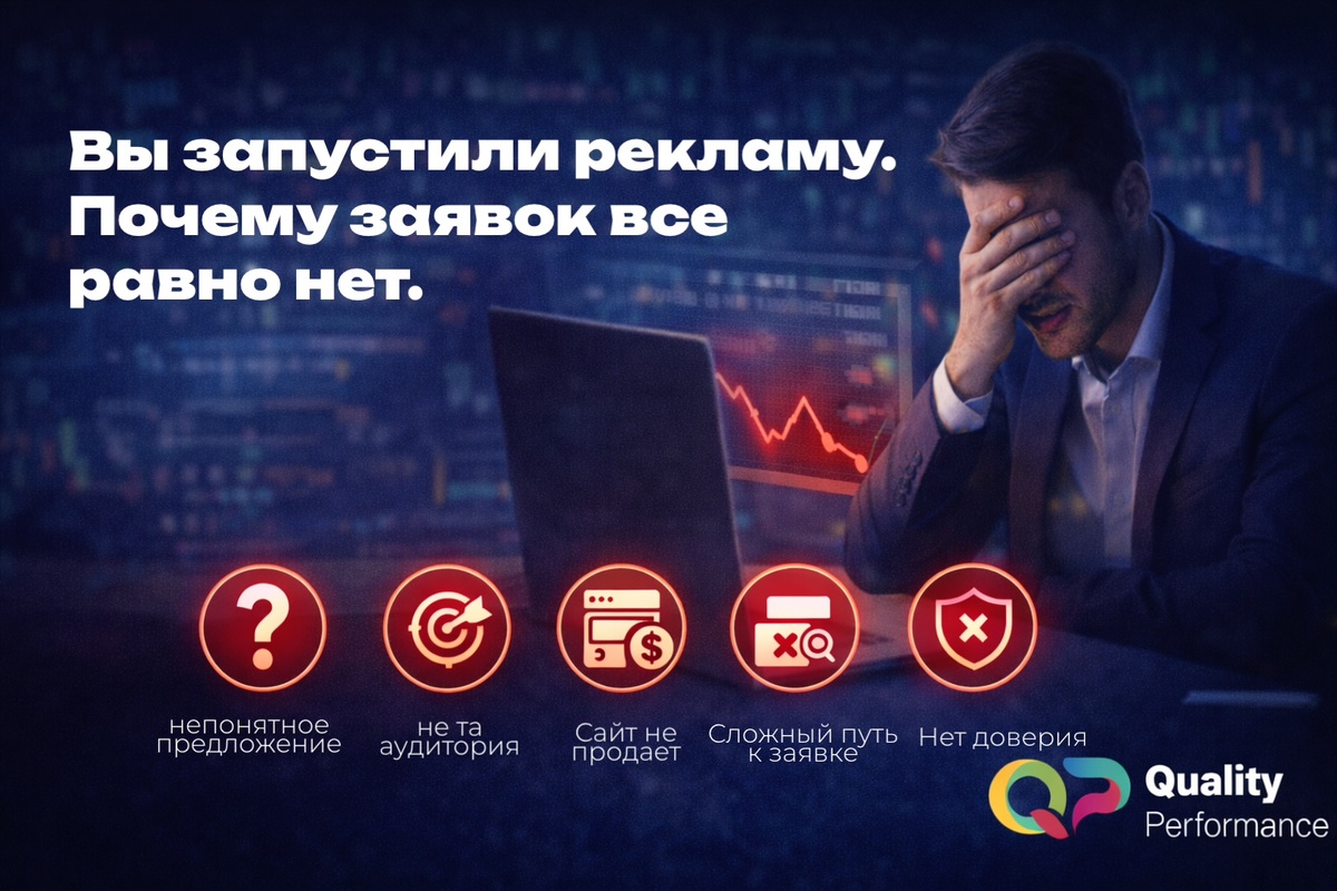 Ситуация, знакомая многим. Рекламу запустили. Бюджет расходуется. Показы идут. Клики есть. А заявок нет. Первое ощущение, что реклама не работает. Но на практике проблема чаще всего глубже. Реклама сама по себе редко является причиной. Обычно она просто показывает слабые места бизнеса. Разберём основные причины, почему вы запустили рекламу, а заявок всё равно нет. 1. Непонятно, что вы предлагаете Самая частая причина. Человек переходит по рекламе и не понимает: что это за продукт для кого он чем отличается от других Если предложение размыто, клиент просто уходит. Сегодня конкуренция высокая. У пользователя есть несколько секунд, чтобы принять решение. Если за это время он не понял ценность, заявка не появится. 2. Реклама приводит не ту аудиторию Реклама может работать технически правильно, но приводить не тех людей. Например: слишком широкий таргетинг неправильные ключевые слова неподходящая география В итоге люди заходят, но не заинтересованы в продукте. Клики есть. Заявок нет. 3. Сай
