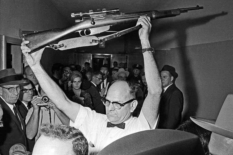 Представьте себе: полицейский в Далласе, держащий винтовку, которая, по версии следствия, стала орудием убийства самого Джона Кеннеди