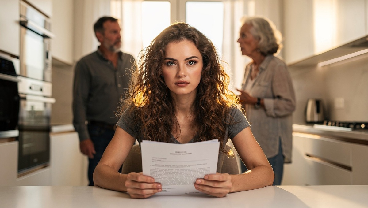 Ольга вернулась с работы раньше обычного — отменилось совещание. В квартире было тихо. Свекровь дремала в спальне, Сергея не было. На кухонном столе лежала папка с документами, придавленная сахарницей. Ольга машинально отодвинула сахарницу, открыла папку — и мир покачнулся.