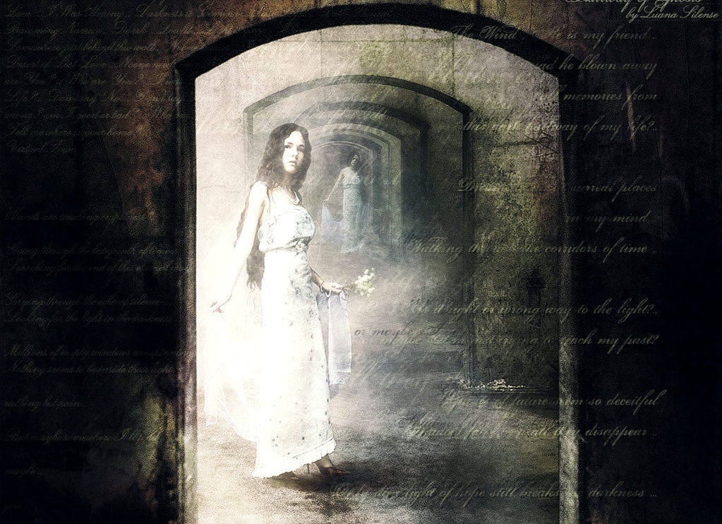 Девушка в белом вывела Яну в большой холл и вдруг нырнула под центральную лестницу. Под лестницей оказалась старая дверь, которая жутко заскрипела, когда Анна дотронулась до неё. Яна вдруг ощутила дикий страх. Куда ведёт её этот.. Этот.. Призрак?