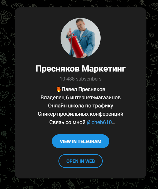 Канал в мессенджере Телеграмм также демонстрирует неплохую динамику, собрав аудиторию в более чем 10 500 преданных подписчиков. Здесь фокус внимания смещен: автор рассказывает преимущественно о тонкостях продвижения бизнеса непосредственно в мессенджере, а также щедро делится знаниями из смежных сфер. Так, в апреле 2026 года коуч активно предлагает инновационный курс, посвященный использованию искусственного интеллекта в бизнесе.