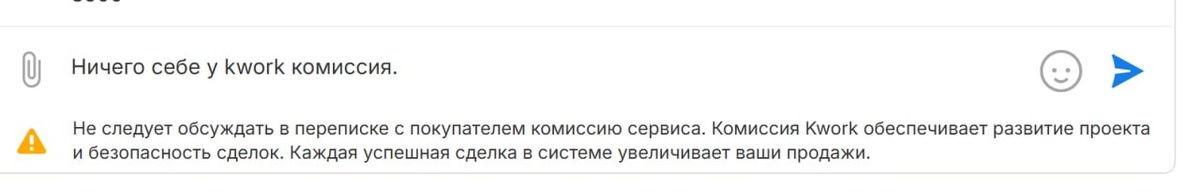 Переписываюсь о жизни с исполнителем в чате kwork. Ещё даже не отправил сообщение, а Большой Брат его прочел, проанализировал и строго меня предупредил.