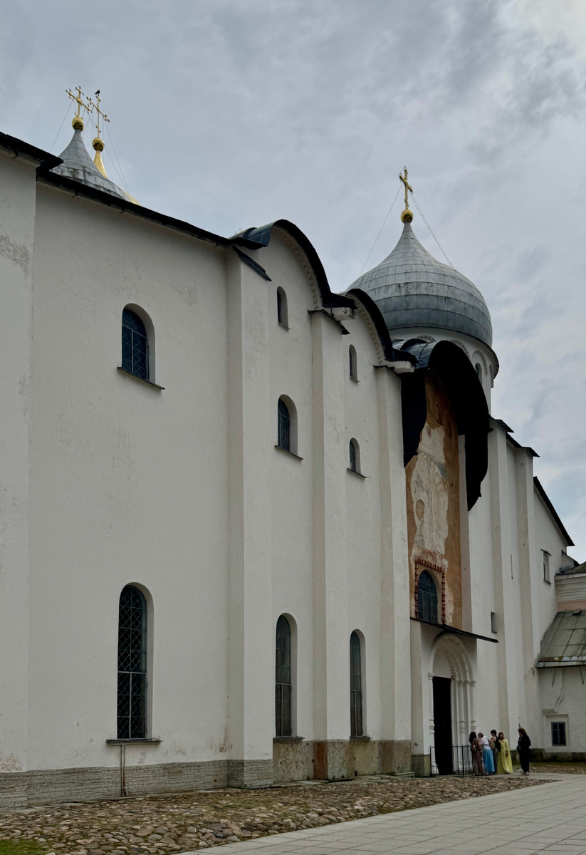 Так, Мартирьевская паперть - участок, по которому можно проследить строительную историю храма. Древний некрополь, фрагменты настенных росписей и те самые граффити — живые надписи новгородцев, оставленные на камне века назад.