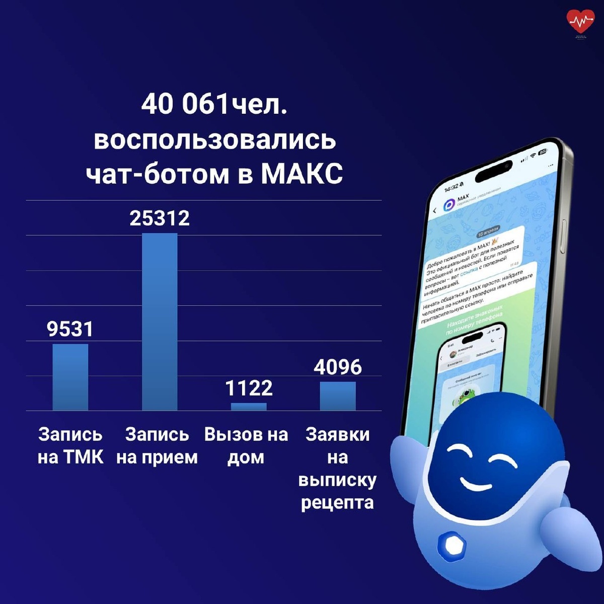 Удобство бота оценили уже больше 40 тысяч жителей региона. Самой популярной функцией оказалась запись на приём – ей воспользовались 25 312 человек. Еще 9 531 пользователь записался на телемедицинские консультации, 4 096 - оформили заявки на выписку льготных рецептов, а 1 122 человека вызвали врача на дом. Также, напомним, с помощью бота можно оставить отзыв о работе медучреждения. Есть функция прикрепления к учётной записи членов семьи. Подключайтесь по ссылке https://clck.ru/3QKyva.
