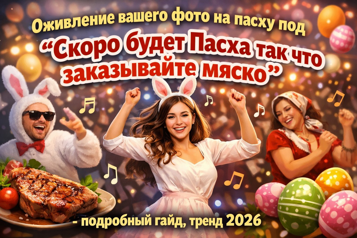 Оживление вашего фото на пасху под "Скоро будет Пасха так что заказывайте мяско" - подробный гайд, тренд 2026