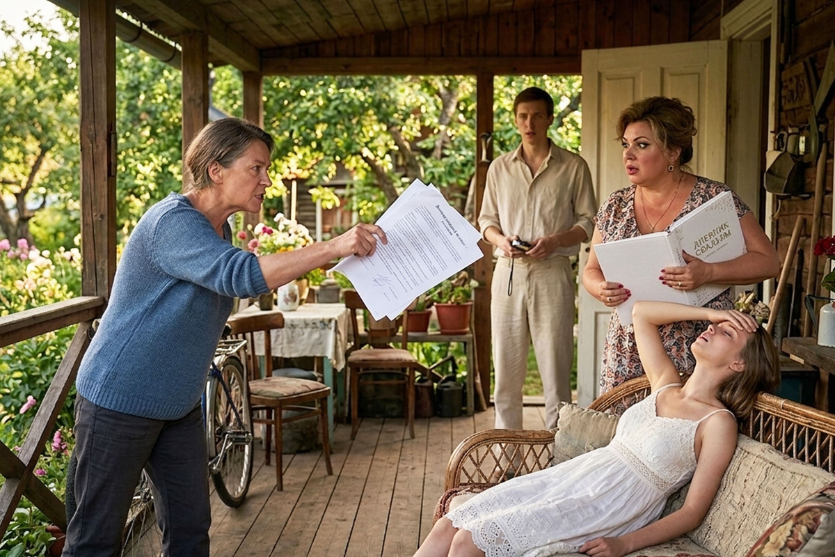 — Я никого не выставляла, — я подошла к пластиковому столу, положила распечатанный договор и аккуратно разорвала плотные листы пополам. Звук рвущейся бумаги в дачной тишине прозвучал неестественно громко. Потом я сложила обрывки и разорвала их еще раз.