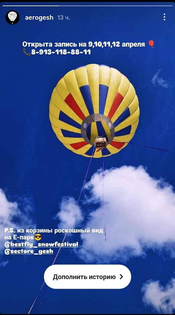 Прогулки на воздушном шаре, сектор Е. В инстаграме отметил тот, кто проводит полёты