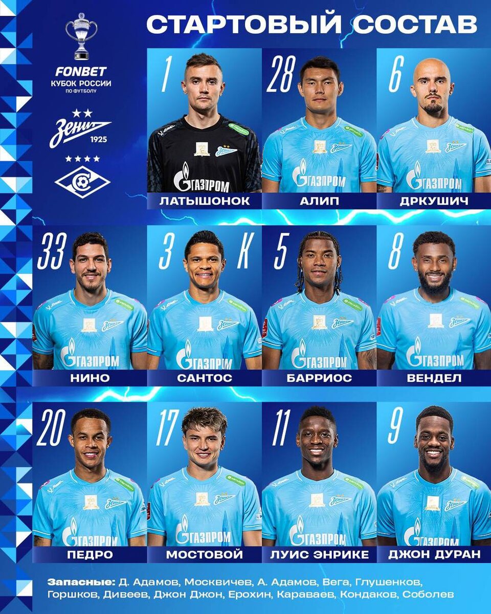 Сегодня вновь не без ротации. Свое время получат Дуран, Мостовой, Алип, Дркушич, Латышонок. Дркушич при это, судя по всему, снова будет правым защитником. Педро — вершиной треугольника в центре с участием в прессинге. Карседо вновь выходит против «Зенита» без центрального нападающего. Интересно будет посмотреть на прессинг, переключения в нем и вызовет ли это проблемы у «Зенита»