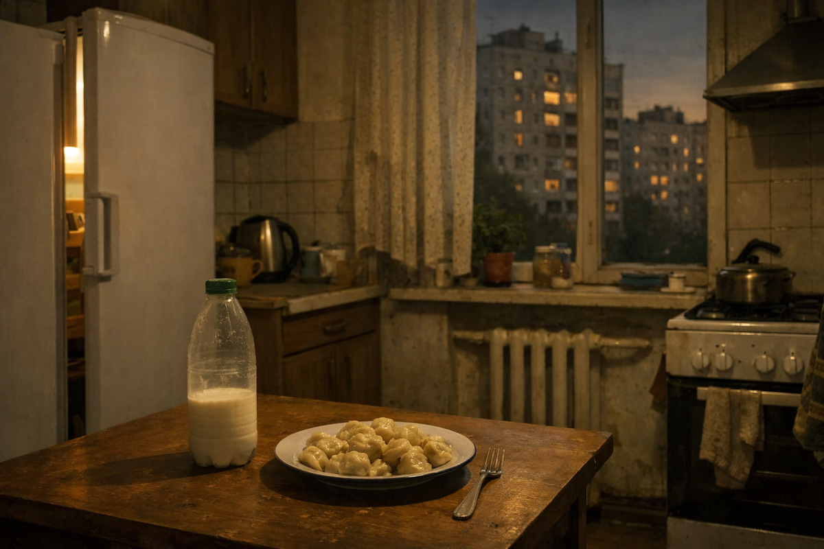 Вечером Сергей включил матч. Комментатор говорил бодро, но без звука было лучше. На кухне темнело. Он не зажигал свет до последнего, пока уже нельзя было отличить нож от вилки на столешнице. Потом всё-таки щёлкнул выключателем, достал из холодильника кефир, отрезал кусок чёрного хлеба и нашёл пельмени, которые оставил днём. Они слиплись в один неровный ком.