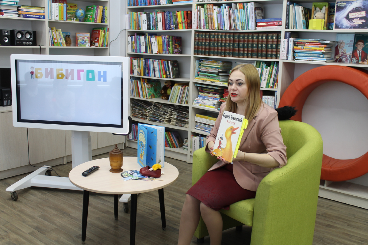 Описание работы: Сегодня библиотекарям на помощь приходят не только книги с удивительными иллюстрациями, но и яркие рукотворные куклы – литературные герои, а также интерактивный стол с интересными заданиями для юных читателей. На фотографии Нина Витальевна Лапшина, заведующий Сокольской детской библиотекой во время чтения с увлечением «Приключения Бибигона».