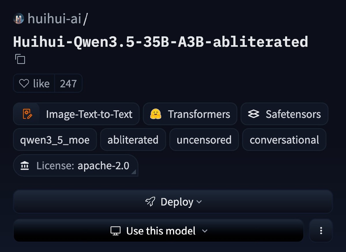 Внутри нее мощнейший Qwen 3.5, которому сорвало чердак. • Никаких отказов! Никаких ограничений! Предел — только ваша фантазия. • Может всё! Справится с любой задачей. • Работает полностью локально и приватно через Ollama. • При этом нейронка реально знает все темные уголки интернета, выдает рискованные ответы и не отвечает за последствия — юзать крайне осторожно! 😶😶😶😶😶😶😶😶😶 Нейродьявол сидит — тут. 👍 Бэкдор