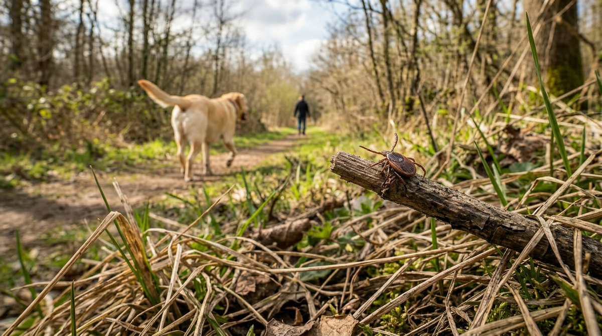 Снег ещё не везде сошёл, а они уже тут. Сидят на прошлогодней траве, на сухих ветках, на кустах вдоль тропинки, по которой вы вчера гуляли с собакой. Клещи просыпаются при устойчивых +5...+7 °C, и март в средней полосе уже попадает в эту зону.