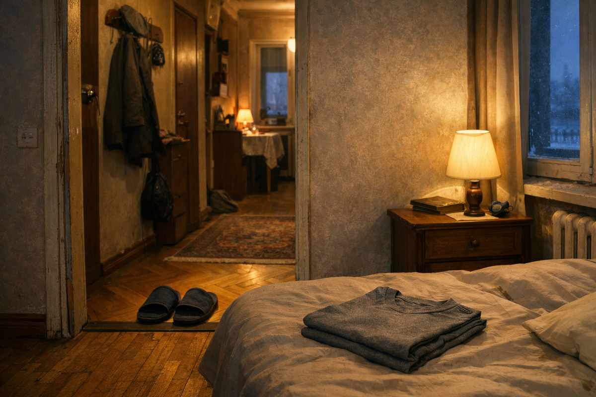 На второй день она проснулась рано, ещё до шести, и сразу села на кровати. Не от звука. Просто так. В комнате было серо. На тумбочке Олега лежали часы, бумажник и чек из заправки. Вера потянулась, опустила ноги на пол и вдруг заметила, что половина шкафа, его половина, будто вышла из комнаты вместе с ним. Пиджак висел, рубашки висели, ремень был на месте. Но всё равно.