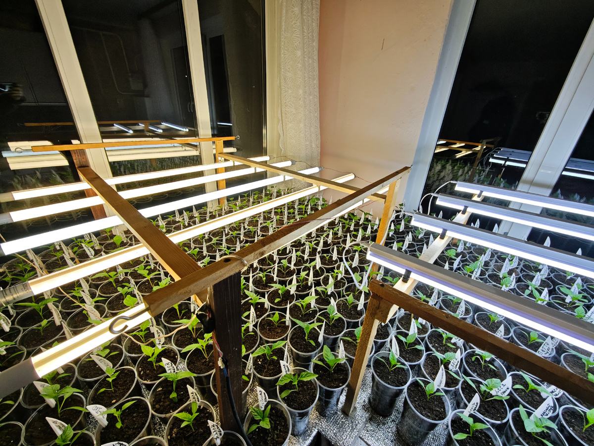 Вчера распикировала острый и сладкий перец, около 200 штук, вместе с первой партией получилось 500 штук. Это весь перец, больше не сеяла. Из этого количества только 3 шт погибли, случайно их залила.